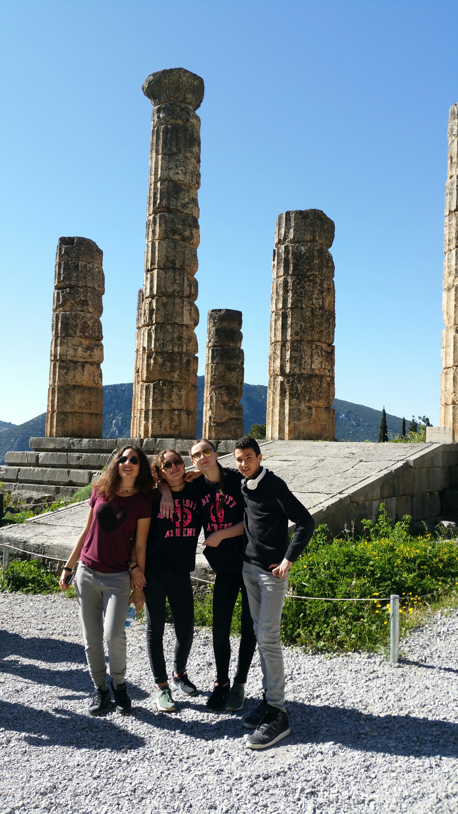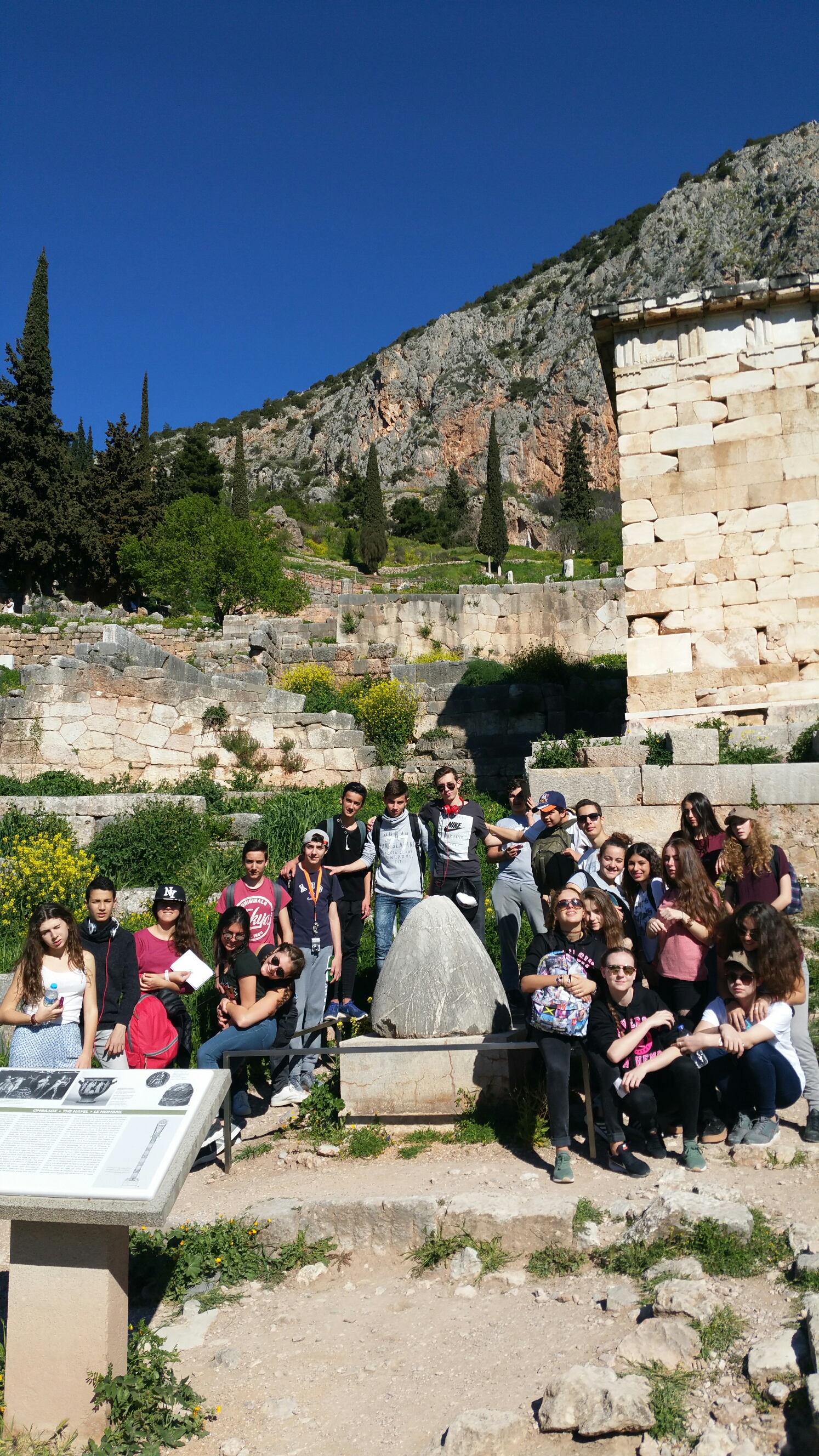 Tout se passe bien en Grèce. La visite du site de Delphes s’est déroulée sous un soleil aussi radieux que pour les jours précédents. On a pu voir le temple d’Apollon où se trouvait le centre de la terre selon les Anciens.